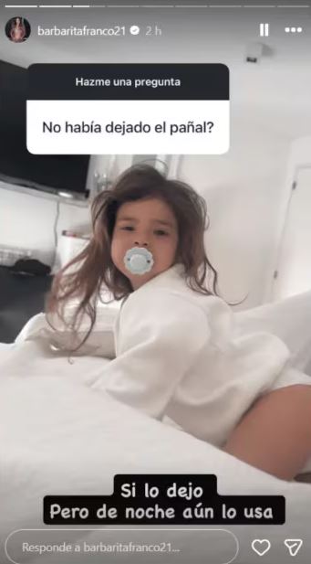 Cuando le preguntaron por el uso del pañal, Franco fue concreta: durante el día ya no lo usa, aunque por la noche sí. Con el chupete, la postura fue similar. No hay apuro ni dramatización; prefiere respetar los tiempos de su hija y evitar comparaciones externas. Una decisión que, en redes, suele generar opiniones encontradas.