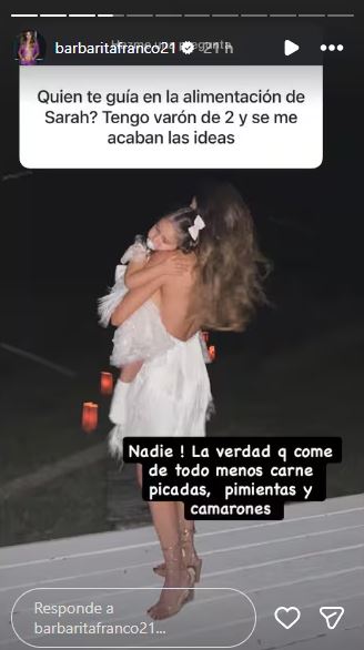 El tema de la alimentación también apareció. En una postal íntima, explicó que Sarah come de todo, aunque hay algunas comidas que no forman parte de su rutina. Sin listas prohibidas ni reglas estrictas, la idea volvió a ser la misma: flexibilidad y sentido común.