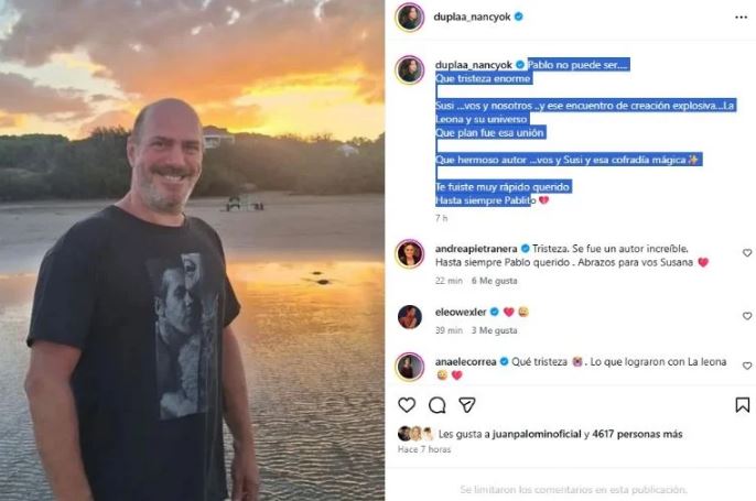 La actriz eligió escribir apenas se enteró. No hubo distancia ni palabras medidas. “Pablo, no puede ser… qué tristeza enorme”, arrancó, como si todavía estuviera procesando la noticia. Ese primer gesto, tan simple, dejó ver el impacto inmediato y el desconcierto frente a una pérdida que no esperaba.