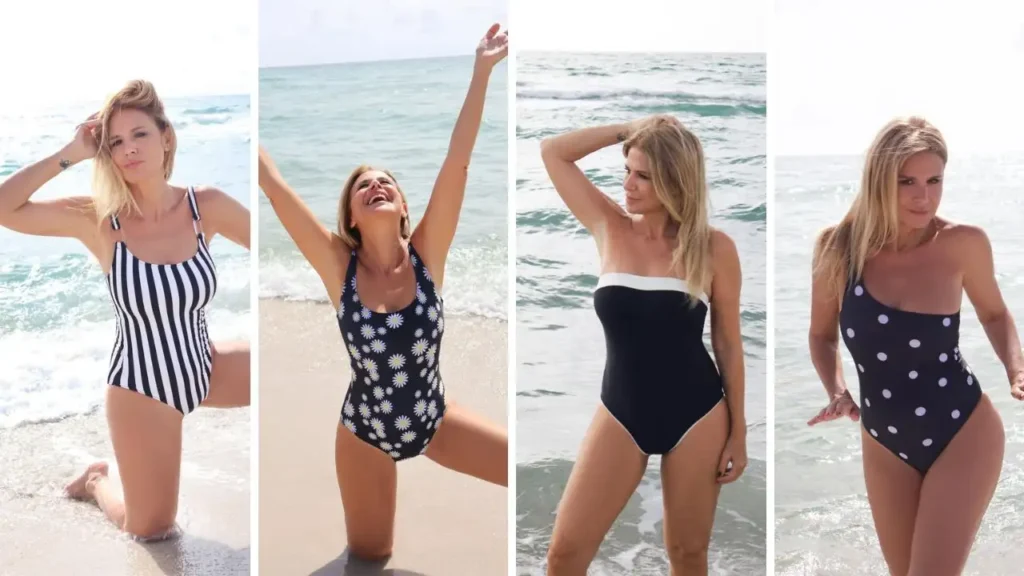 En una primera tanda de fotos, Flavia Palmiero eligió mallas enterizas de distintos estilos, todas pensadas para brindar comodidad y sostén.