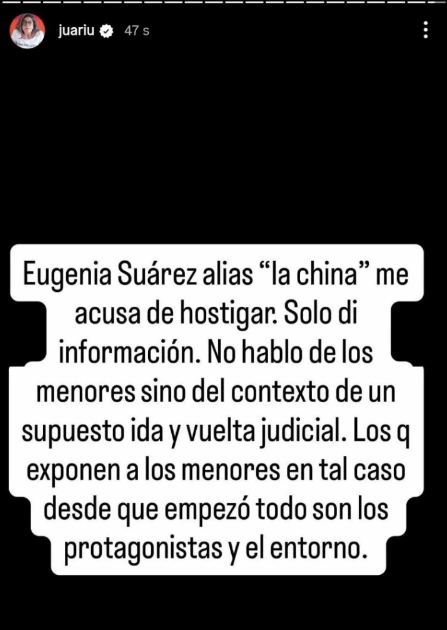 Tras esas historias, la China Suárez reaccionó con un mensaje en el que acusó a la periodista de fomentar el bullying y de hostigar a una menor, una afirmación que generó fuerte repercusión en redes sociales.