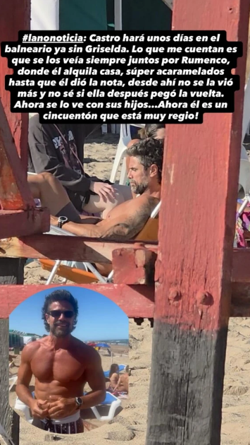 Las fotos que compartió la cuenta Gossipeame reforzaron esa postal: Castro solo en el balneario, con gesto serio, lejos del Luciano expansivo que suele verse en público. No hubo escándalos ni escenas. Hubo silencio. Y eso, en un contexto tan expuesto, llamó la atención.