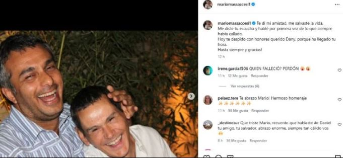 Mario Massaccesi eligió despedir a Daniel Colombo sin vueltas ni solemnidad impostada. Lo hizo con una frase directa, casi cruda, que dice más que cualquier homenaje extenso: “Te di mi amistad, me salvaste la vida”. La escribió en Instagram, acompañada por fotos compartidas, de esas que no necesitan explicación porque hablan por sí solas.
