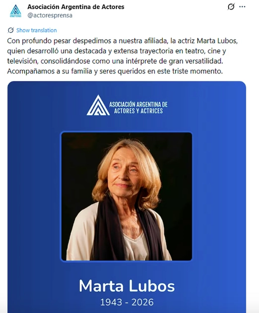 Murió Marta Lubos a los 82 años y su nombre volvió a aparecer de golpe, no por escándalo ni por exposición, sino por algo más incómodo: su ausencia.