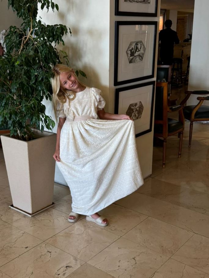 «Hoy puse mis manitos junto con mi padrino en MDQ. Momento único que quedará para siempre», escribió la heredera de la modelo junto a una serie de fotos con el conductor. Sin embargo, la que se llevó todos los «likes» y elogios por parte de sus seguidores fue donde se puede apreciar bien su delicado vestido. «Qué hermosa», «Lo bella que está Matilda», «Qué lindo vestido, acorde a su edad», «Tan perfecta», fueron algunos de los tantos mensajes que dejaron los usuarios en su cuenta, la cual es administrada por la propia Luciana Salazar.