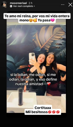 Después, Morena escribió de su puño y letra. “Te amo mi reina, por vos mi vida entera… ya pasa”, acompañó, con un corazón roto que resumía más de lo que decía. En la misma story agregó otra línea, mínima, casi seca: “Cortita. Mil besitos”. Para muchos, una respuesta indirecta a las críticas que se multiplicaron en redes tras la noticia.