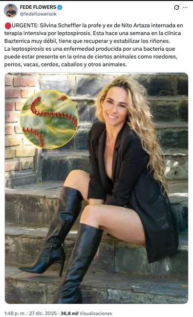 Flowers explicó que la ex “Gran Hermano” se encuentra internada en la Clínica Bazterrica por leptospirosis, una infección causada por una bacteria que puede transmitirse por contacto con la orina de animales. En su caso, el cuadro afectó su organismo y comprometió la función renal, lo que obligó a una atención médica estricta y permanente.