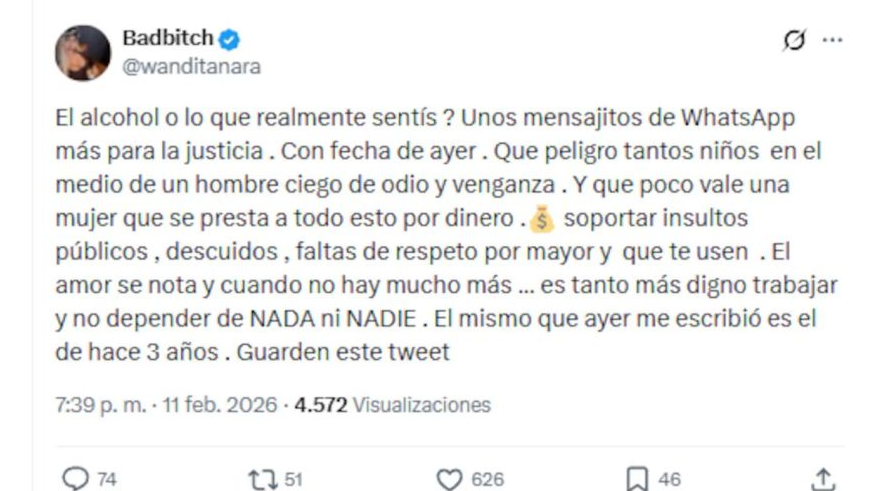 En otro posteo, Wanda escribió: “Qué peligro tantos niños en el medio de un hombre ciego de odio y venganza”.