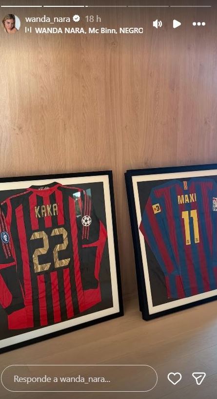 La camiseta del Barcelona, regalo de Maxi cuando jugaba en España —antes de su boda en 2008—, no está escondida ni relegada a un pasillo. Está enmarcada, lista para formar parte de la decoración definitiva. Al lado, otra historia: una del São Paulo FC, obsequio de Kaká. Dos recuerdos, dos ex, un mismo espacio.